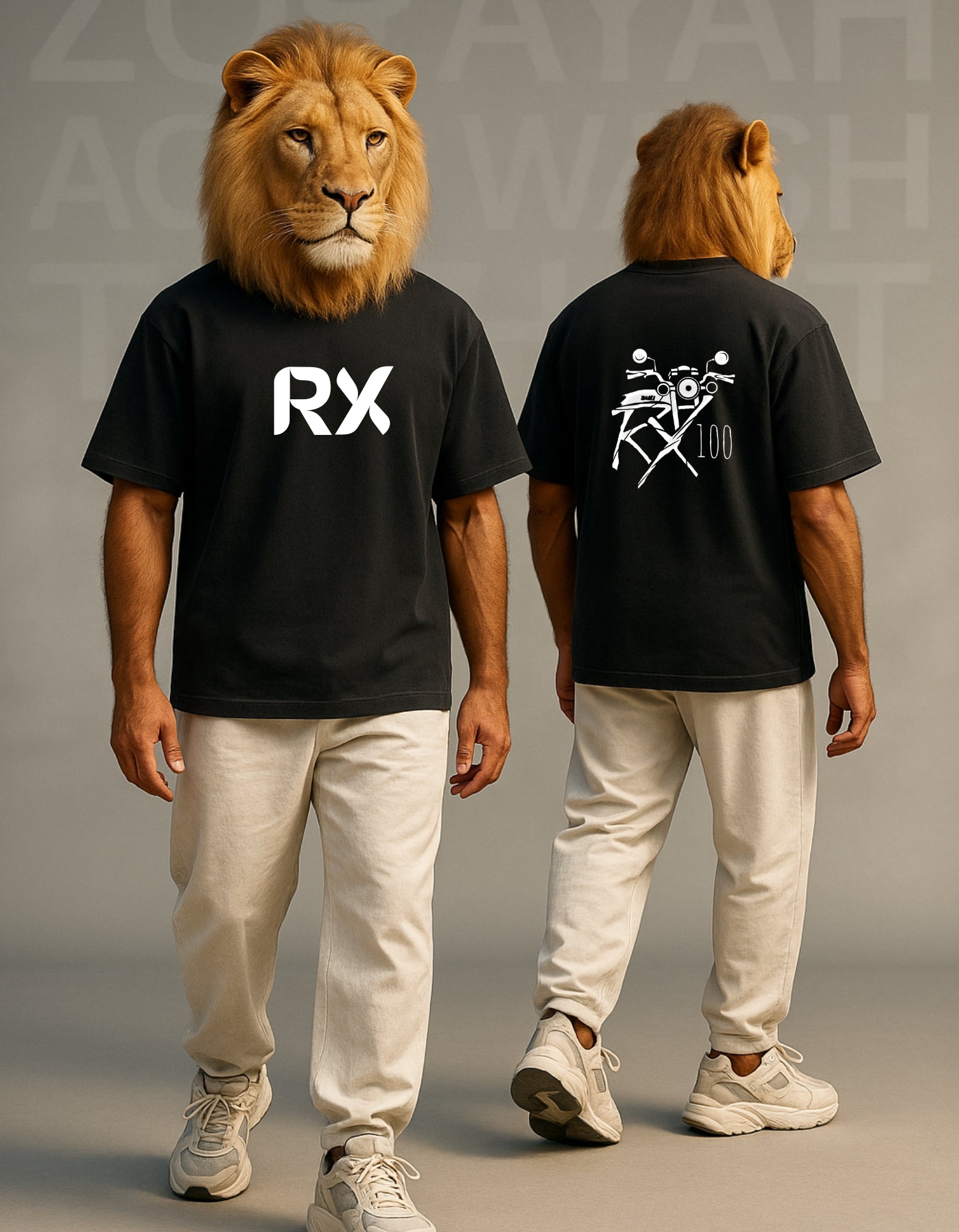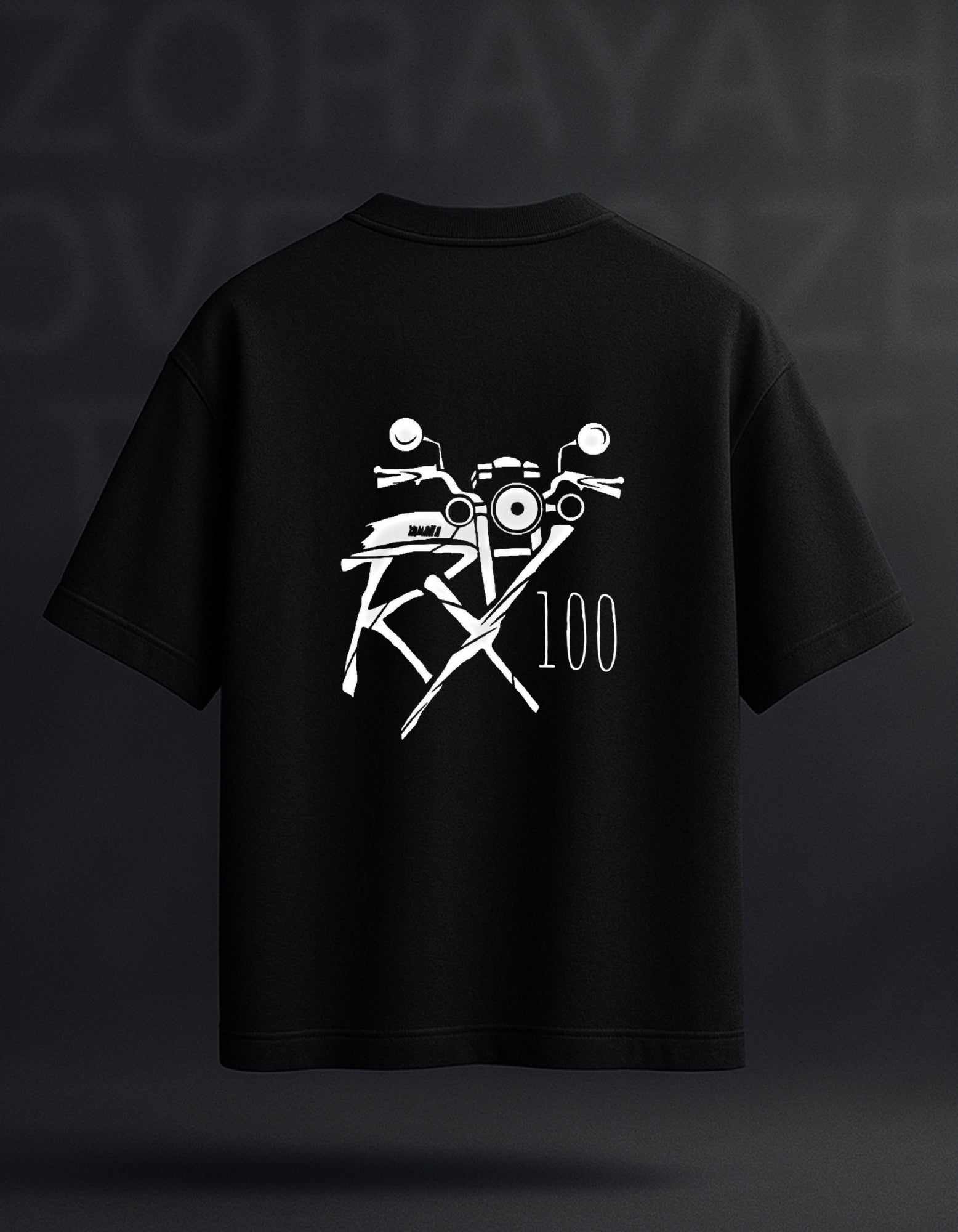 The ZORAYAH RX100 Oversized Tee is a tribute to an icon β the Yamaha RX100, a symbol of speed, street dominance, and timeless style. This heavyweight 240 GSM tee features a clean βRXβ logo on the front and a bold custom RX100 bike graphic on the back β a true salute to the rider in you.